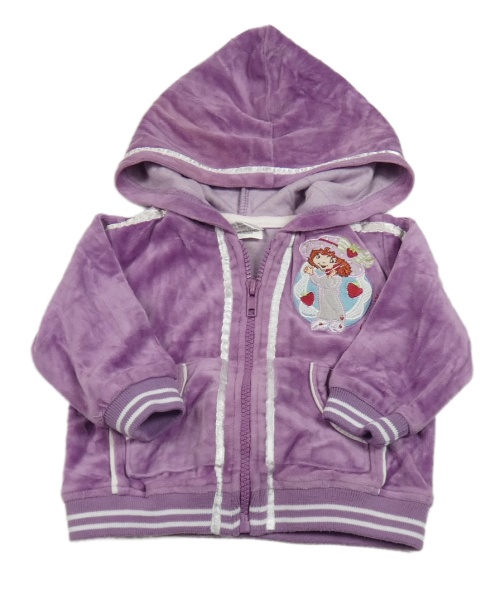 Fialová zamatová prepínaci mikina so Šarlotou a pruhmi a kapucňou
