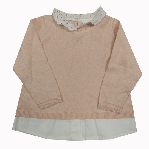 Ružový sveter s golierikom s madeirou a halenkou H&M