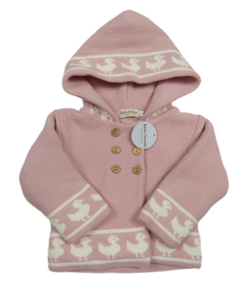 Nové - Svetloružový prepínaci podšitý sveter s kachnami a kapucňou Doňa Carmen