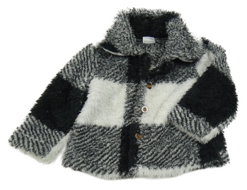 Bielo-čierna kockovaná chlpatá prepínaci mikina s golierikom