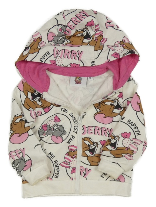 Smotanová vzorovaná prepínaci mikina s Tomem a Jerrym a kapucňou