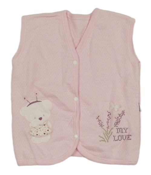 Svetloružová vzorovaná prepínaci tepláková vesta s medvedíkom