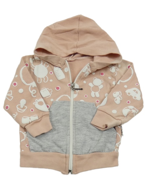 Svetloružová vzorovaná prepínaci mikina s sivou vreckom a kapucňou