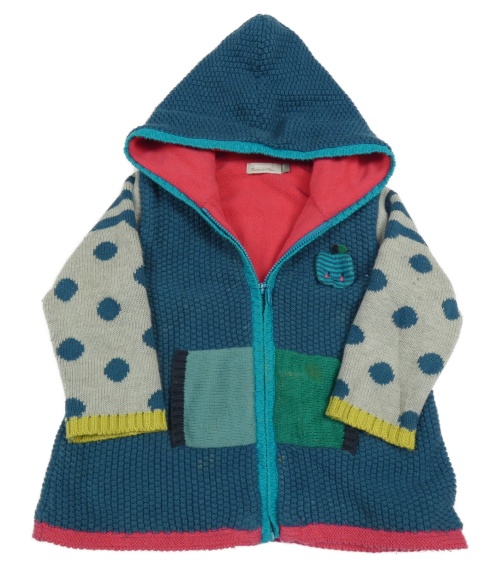 Petrolejovo-sivý zateplený prepínaci dlhý sveter s bodkami a kapucňou Catimini