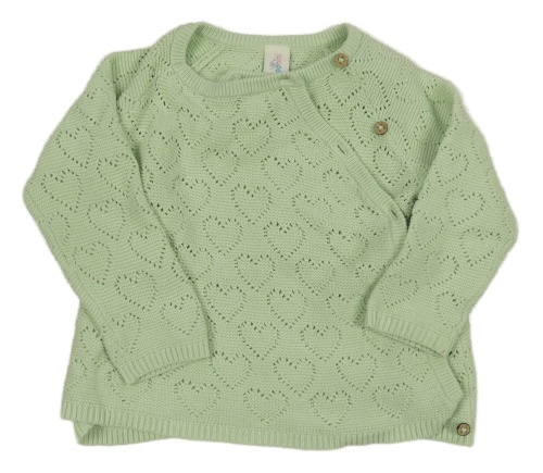 Svetlozelený zavinovací prepínaci sveter s perforovanými srdiečkami Topomini