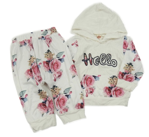 2 set - Biela kvetovaná ľahká mikina s kapucí + tepláky