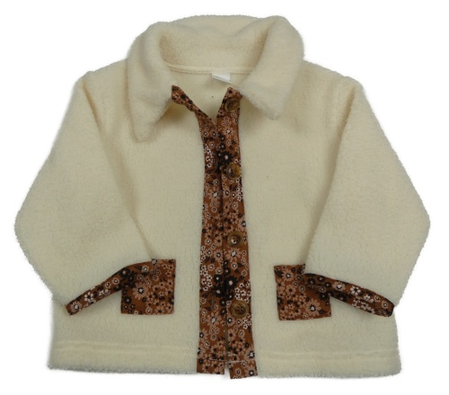 Krémová huňatá prepínaci mikina s vreckami s kvetmi