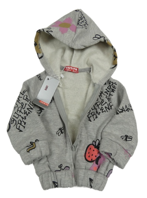Nové - Sivá prepínaci mikina s nápismi a kapucňou