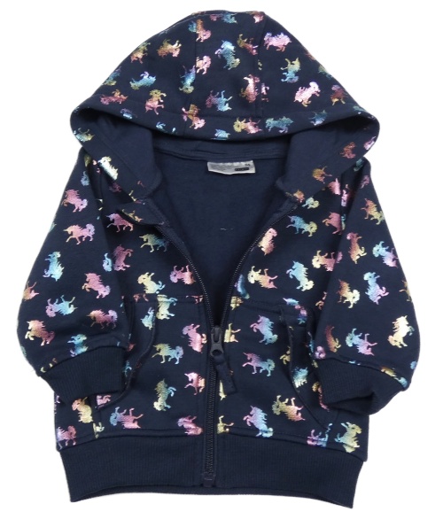 Tmavomodrá prepínaci mikina s jednorožcami a kapucňou Ergee