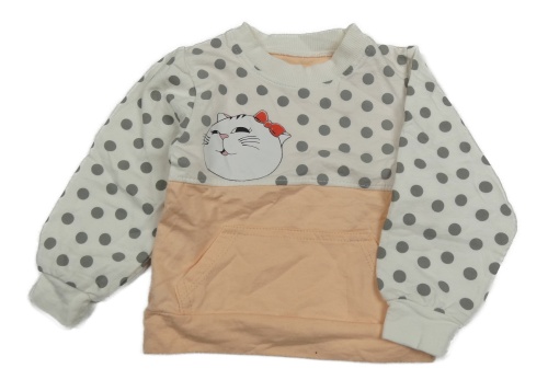 Bielo-marhuľová mikina s bodkami a mačičkou a vreckom