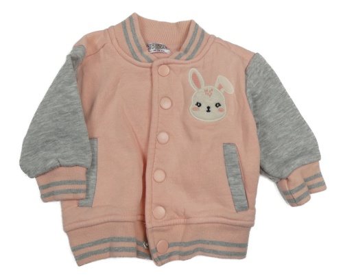 Svetloružová -sivá baseballová tepláková mikina so zajačikom a pruhmi Hello Baby