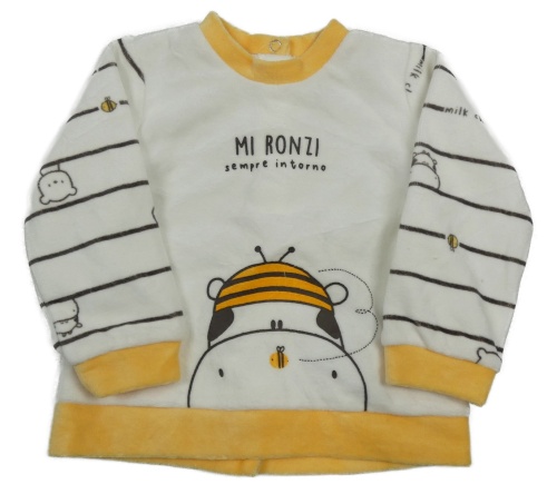 • Bielo-tmavohnědo/žlutá pruhovaná zamatová mikina s kravičkou Chicco