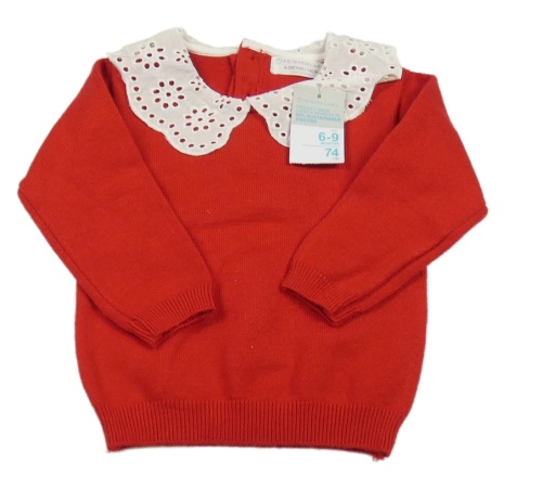 Nové - červený ľahký sveter s bielým madeirovým golierikom Primark
