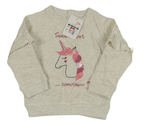 Nové - svetlobéžová melírovaná mikina s jednorožcom a volánikmi