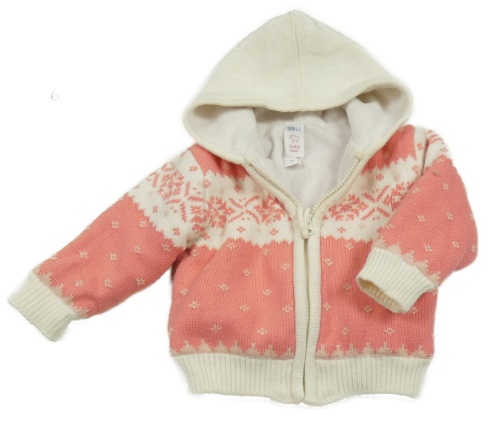 Bielo-ružový vzorovaný prepínaci zateplený sveter s kapucňou C&A