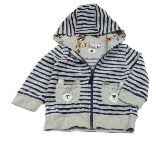 Sivo-modrá pruhovaná zamatová prepínaci mikina s medveďmi a kapucňou manguun