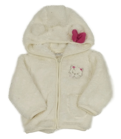 Smotanová chlpatá prepínaci mikina s mačičkou a kapucňou s mašlou