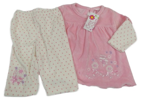 Nové - svetloružová -biela zamatová tunika s myškou a kvietkami a puntíky + tepláky Cutey Couture