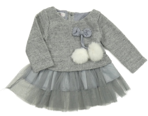 Sivá teplákovo/tylová tunika s mašlou s bambulemi