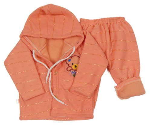 2 set - lososová zateplená prepínaci mikina s medvěďom a kapucí + zateplené tepláky
