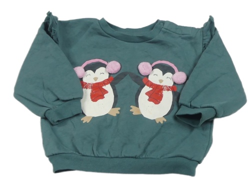Zelenošedá mikina s tučňáky a volánikmi M&S