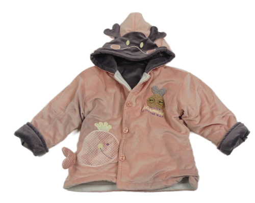 Svetloružová -sivá plyšová zateplená prepínaci mikina s obrázkami a kapucňou