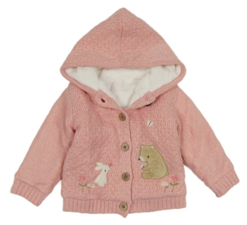 Ružový zateplený prepínaci sveter s medvěďom a kapucňou Nutmeg