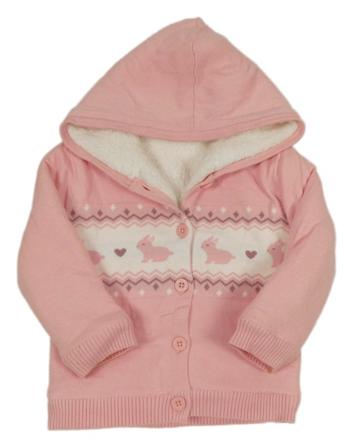 Ružovo-biely úpletový zateplený prepínaci sveter s králíčky a kapucňou Nutmeg