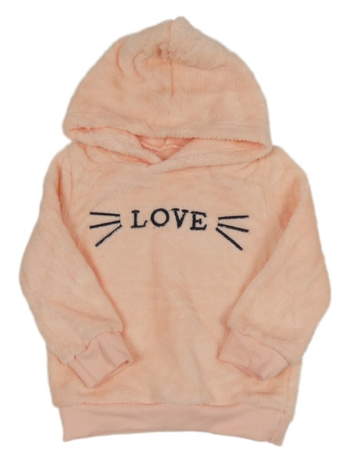 Broskvová chlpatá mikina s nápisom a kapucňou