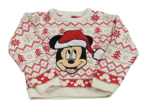 Bielo-červený vzorovaný sveter s Mickeym Disney