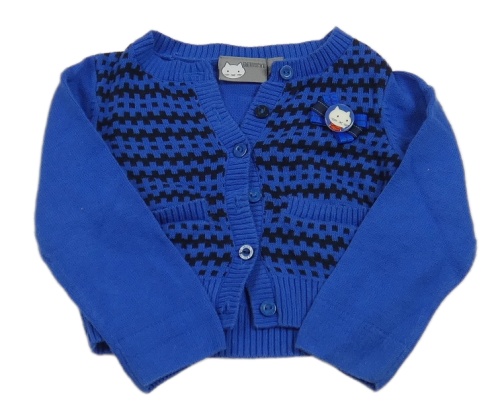Safírovo-tmavomodrý vzorovaný prepínaci sveter s mačičkou MUSTI