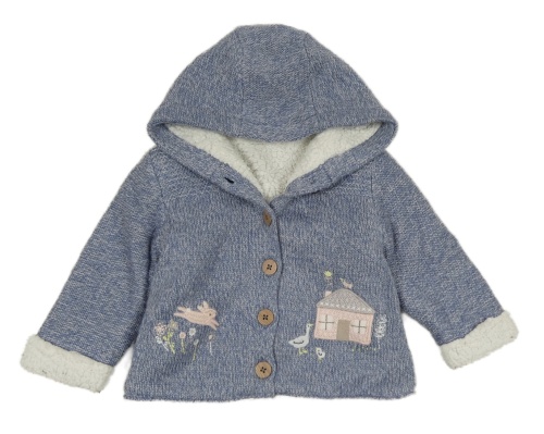 Modrý melírovaný zateplený prepínaci sveter s obrázkom a kapucňou Nutmeg