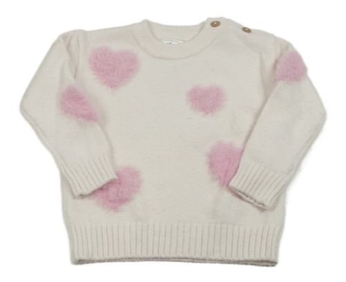 Smotanový sveter s ružovými chlpatými srdiečkami so cute
