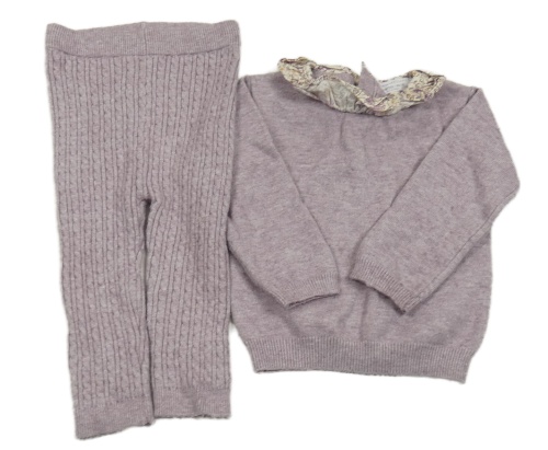2set - Lila melírovaný sveter s límečkem + vzorované pletené legíny Primark