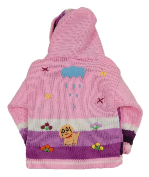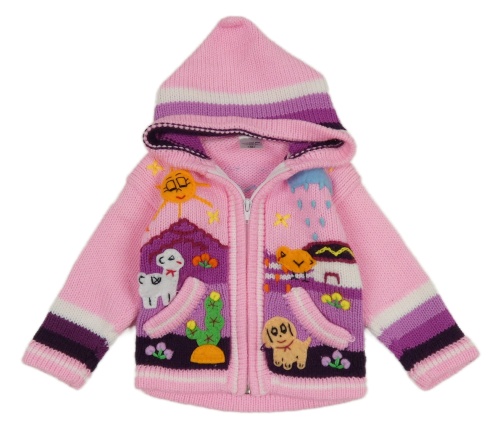 Ružový prepínaci sveter s obrázkami a kapucňou