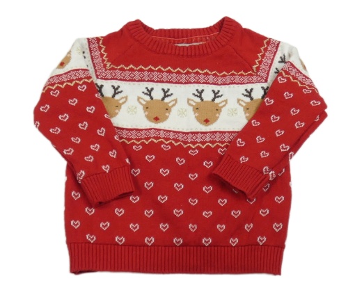 Červeno-biely sveter so sobmi a srdiečkami Primark