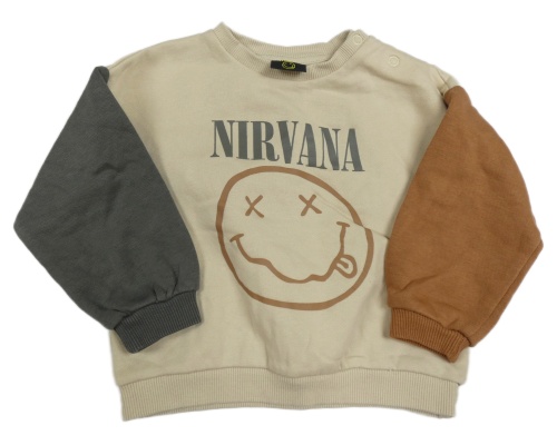 • Světlebéžovo-hnedo-tmavosivá oversize mikina so smajlíkom a nápisom