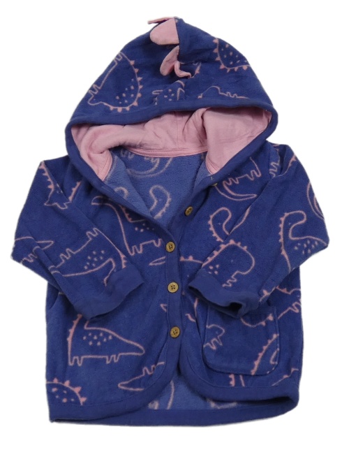 Tmavomodro-ružová fleecová prepínaci mikina s dinosaurami a kapucňou George