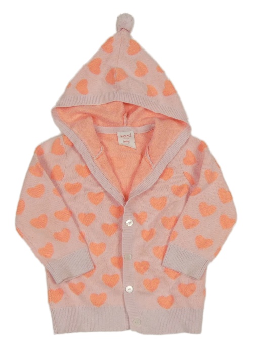 Ružový prepínaci sveter so srdiečkami a kapucňou Seed