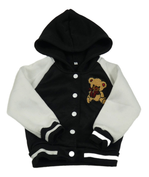Čierno-biela baseballová mikina s medvěďom a kapucňou