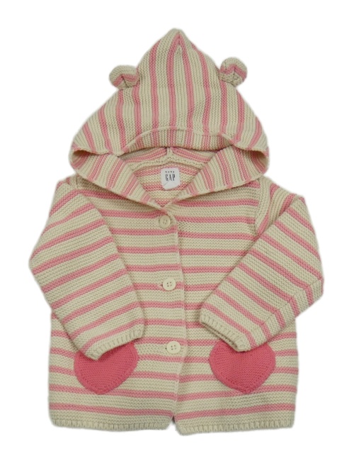 Smetanovo-ružový pruhovaný prepínaci sveter so srdiečkami a kapucňou GAP