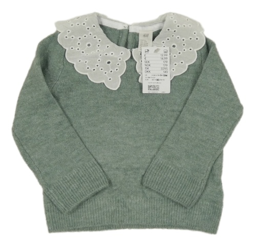 Nové - olivový melírovaný vlnený sveter s golierikom s madeirou H&M