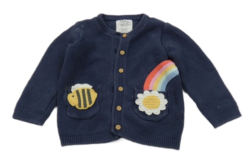 Tmavomodrý prepínaci sveter s dúhou a včielkou F&F