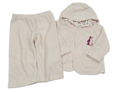 2Set - Svetloružová zamatová prepínaci podšitá mikina s tučňáčkem a kapucí + tepláky impidimpi
