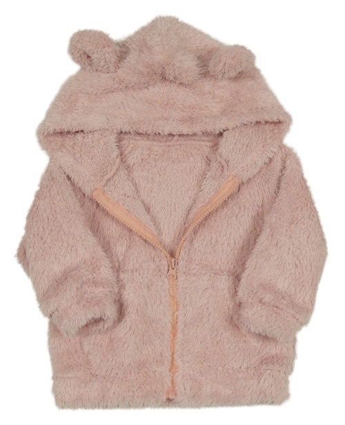 Ružová chlpatá prepínaci mikina s kapucňou s uškami