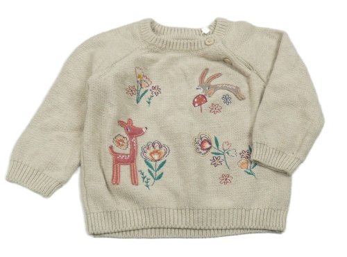 Béžový sveter s výšivkami květů a zvířaty Nutmeg