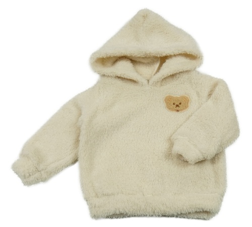 Smotanová huňatá mikina s medvedíkom a kapucňou