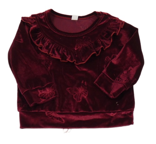 Vínová zamatová mikina s motýly a volánem