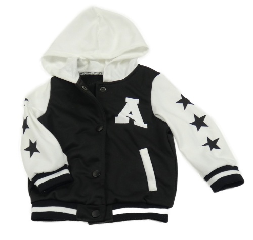Čierno-biela baseballová mikina s písmenem a kapucňou