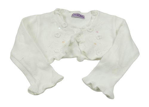 Biele svetrové bolerko s 3D kvety a flitrami Cherokee